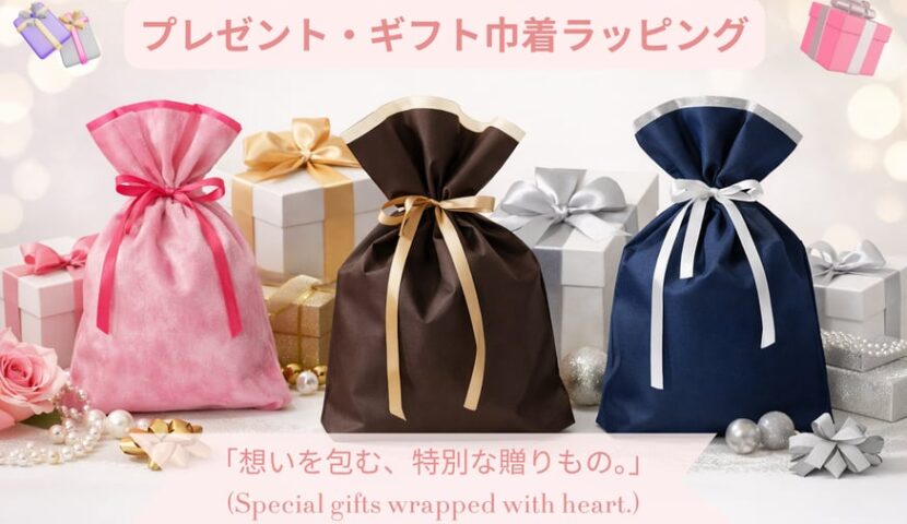 この度、皆様の大切な贈りものをより華やかに彩るため、「オリジナルの巾着ギフトラッピングサービス」**を新たに開始いたしました。